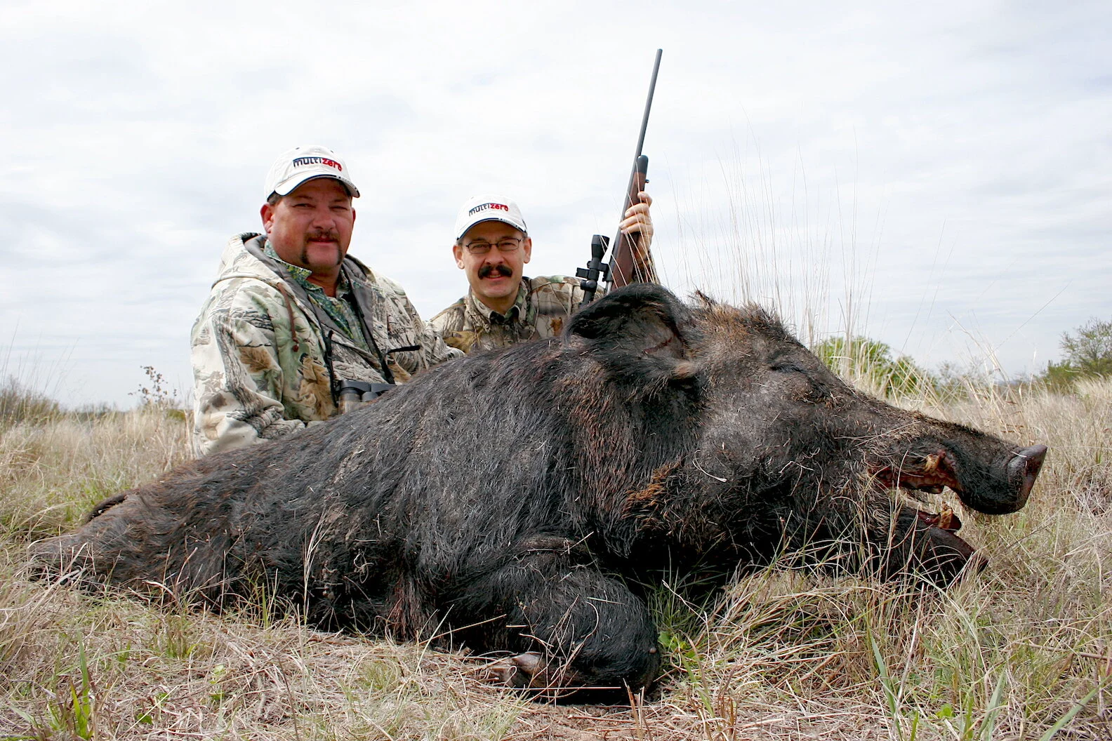 A 300 Blackout was not used to take this feral hog, but its parent case, the 221 Fireball, was! If a 50-grain bullet from the Fireball can do in a hog of this size, the 300 Blackout should have no problems.