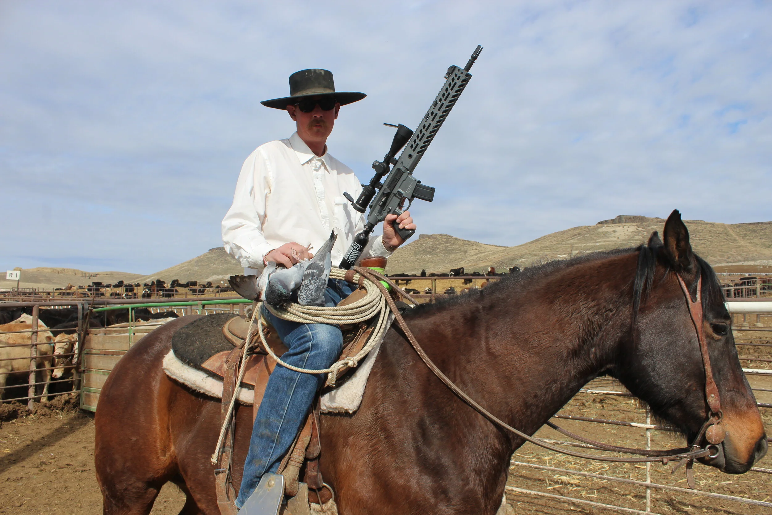 One of the biggest advantages of quiet-shooting airguns is that they allow you to hunt around livestock. I often pigeon hunt in large feedlots of 100,000 head of cattle. You can shoot around livestock without spooking them. If you’re right beside a horse or steer, it might flinch or jump a little just because it is something new, but they’ll quickly become accustomed to it. When I was a kid we shot near our cows and horse all the time.