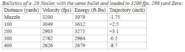 A 170-grain Stopring bullet leaves the muzzle of a 7x66 SE vom Hofe rifle at 3,294 fps for a whopping 4,086 ft-lbs. That is serious output. The .28 Nosler loaded with a 175-grain Accubond long-range bullet? It will generate 3,125 fps for 3,794 ft-lbs at the muzzle of a 26-inch pipe.