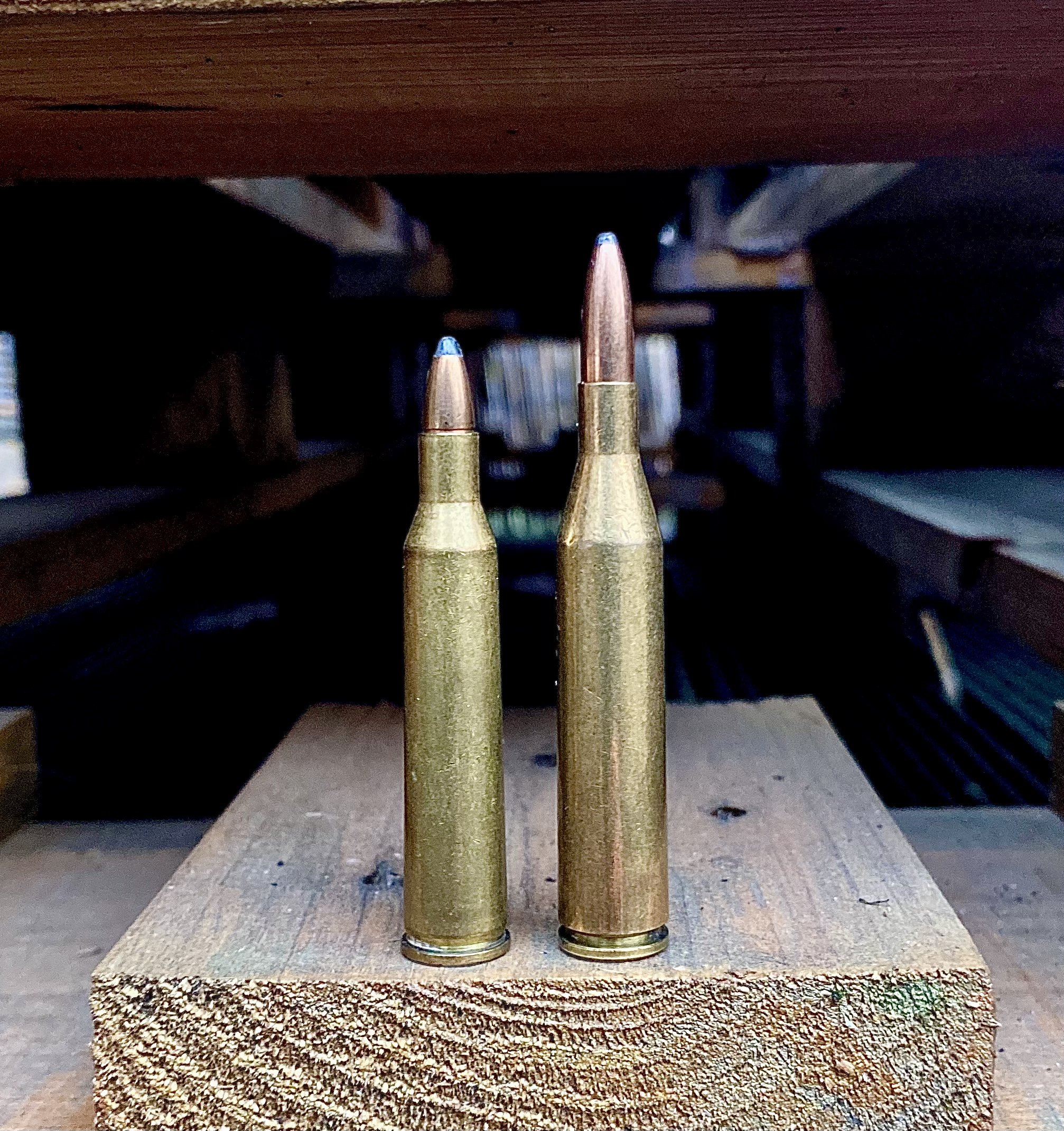 The 5.6x61 Super Express (right) next to the .220 Swift.