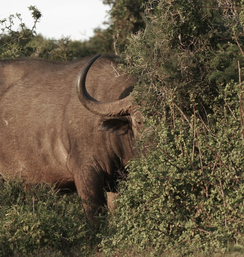 The path the buffalo took was nearly impossible to walk through. Visibility as short, but we soon spotted the bull very much alive and standing in the shadows of scrub mopane. An ear wiggle had given him away at less than 20 yards. Time seemed to freeze!