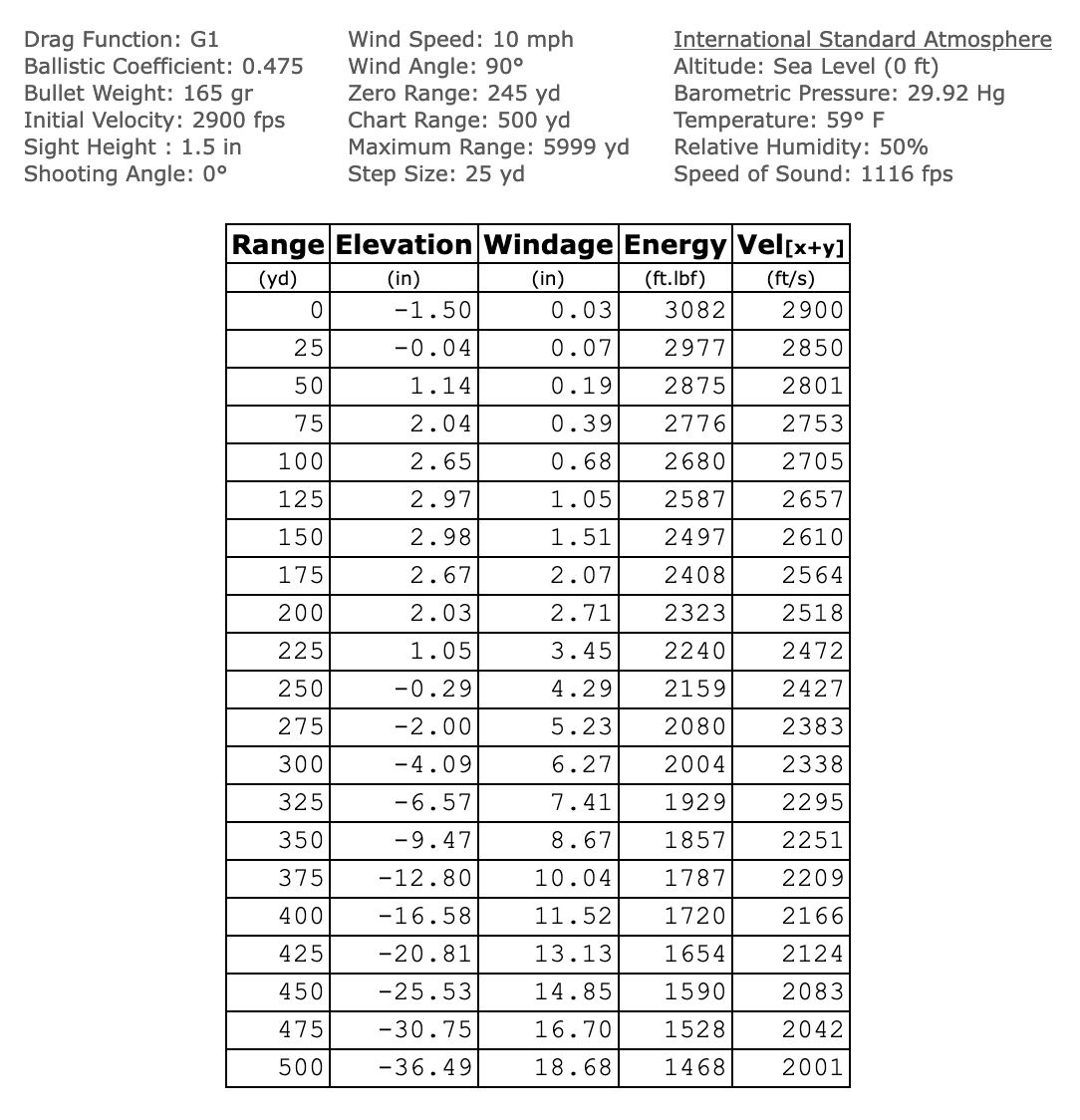 The 250- to 260-grain .375s would seem the better deer hunting projectiles (SD .264) for a reasonable trajectory curve out to 300 yards or so. Nosler’s 260-grain AccuBond is B.C. rated at .473 and can be driven 2,750 fps from a 24-inch barrel, according to Nosler Reloading Guide 9. The 30-06 equivalent would be a 165-grain AccuBond with an SD of .248 and B.C. of .475. From a 24-inch barrel it should hit 2,900 fps. Obviously, with those numbers the 30-06 will scribe the flattest trajectory with the least wind deflection. Zero both of these for MPBR on a 6-inch target and the 30-06 shoots about 2 inches flatter at 300 yards, about 7 inches flatter at 500 yards. Wind deflection is quite close at 300 yards, but the 30-06 begins showing a slim advantage at 500 yards. The significant difference is retained energy with the 375 carrying 800 f-p more at 300 yards, 567 f-p more at 500 yards, as the following charts show: