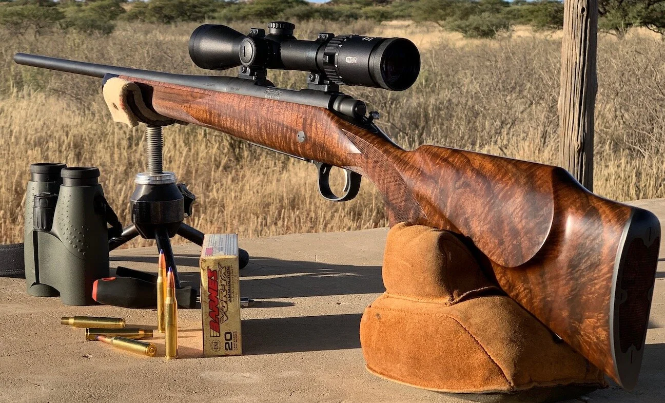 Jerry Schnabel hasn't seen any shifts in impacts in his off-the-shelf Remington wood stock deer rifles -- not even when he took one to dry, dry Namibia on safari. Super guide Willy Baas was most pleased with Jerry's shooting!