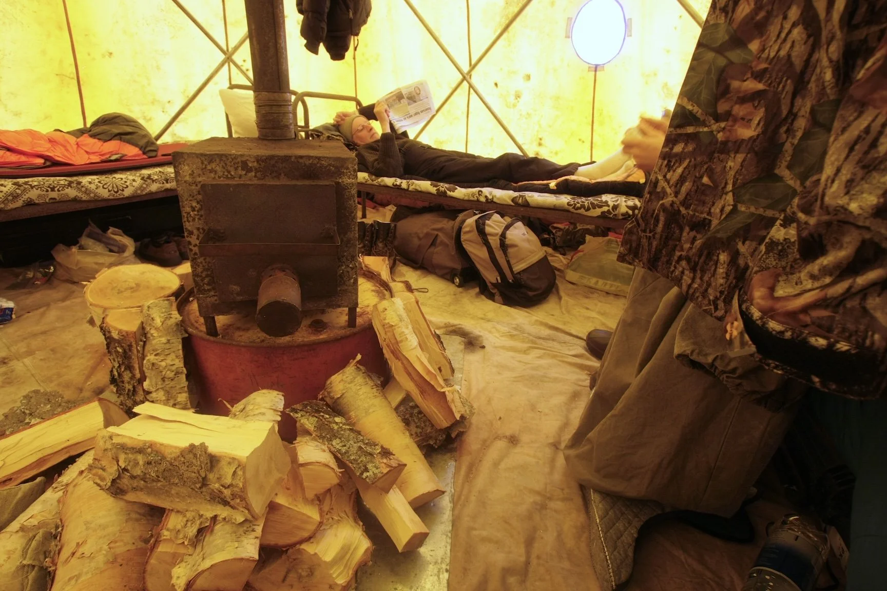 Fifth, you must tolerate ten days largely confined to tents, a cooking shack buried to the ridgeline in snow, and a pit toilet where old newspapers are the only papers.