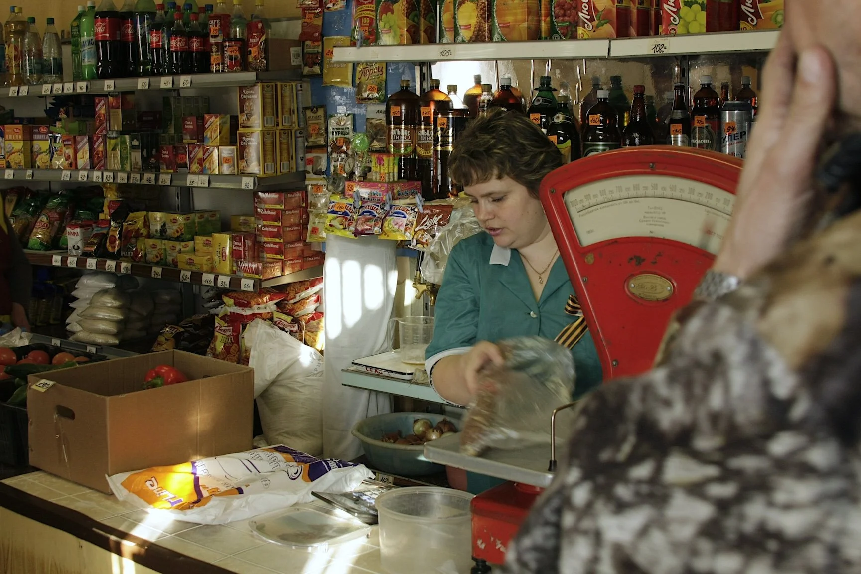 Nikolai leads us into the last village grocery before the wilderness begins.