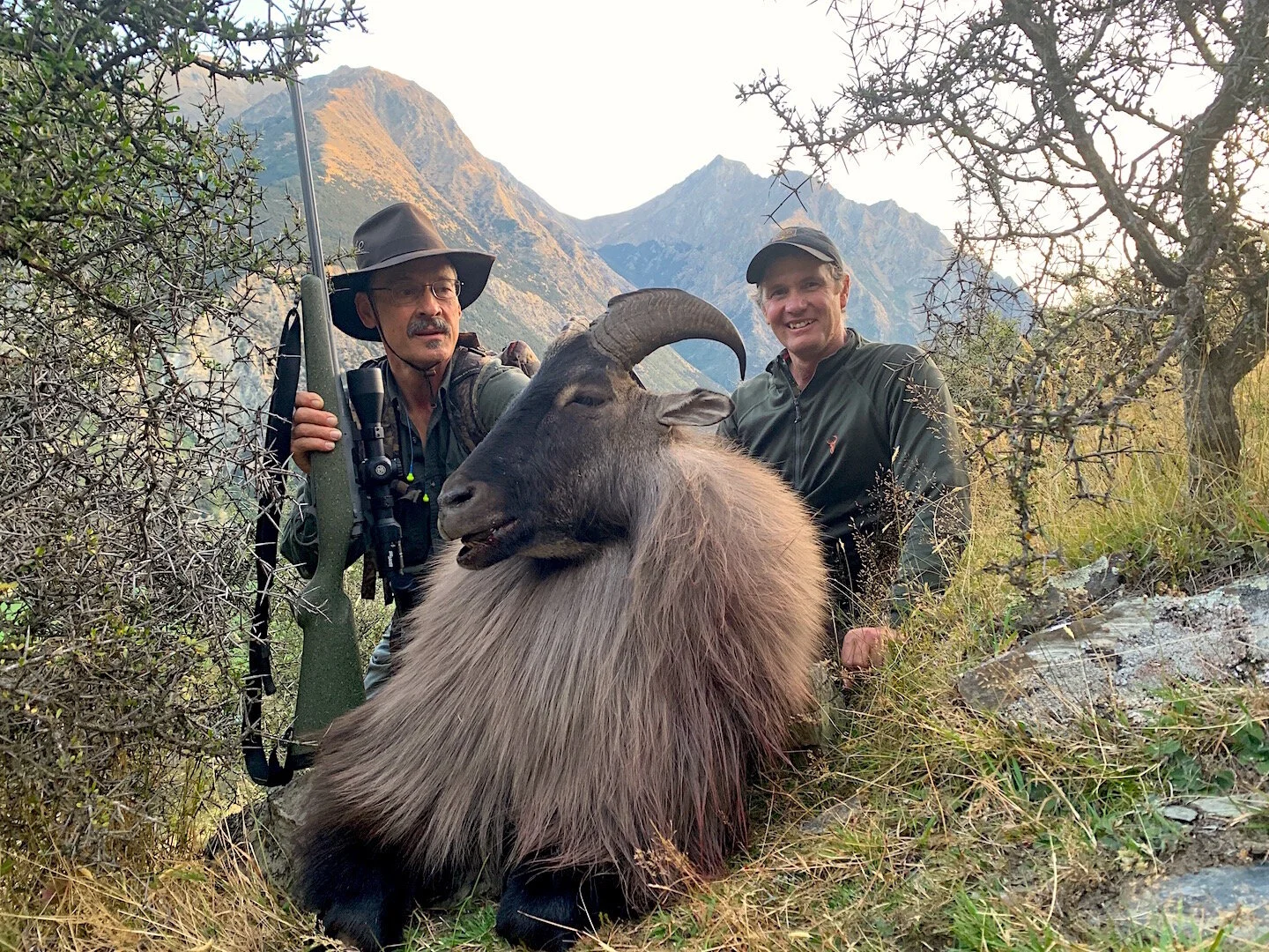 Hunters with bull tahr as part of the 6.5 Creedmoor tests in New Zealand.