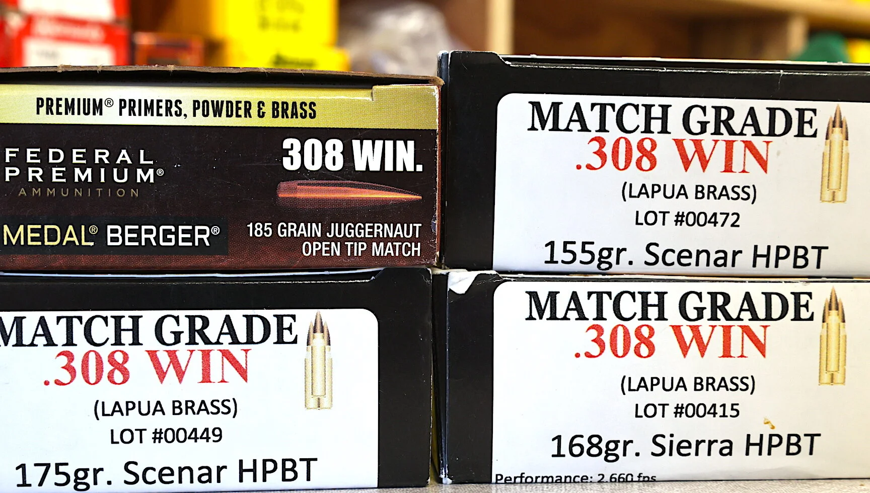Notice the word “MATCH” on this 308 Win. ammo. You rarely see this on factory loaded 30-06 ammo. That’s a big part of the reason why the 308 often shoots tighter groups than the 30-06. This doesn’t mean the 308 Winchester case is somehow magically, inherently more accurate. It’s just more often carefully built/loaded to be superbly accurate. Ditto rifles.
