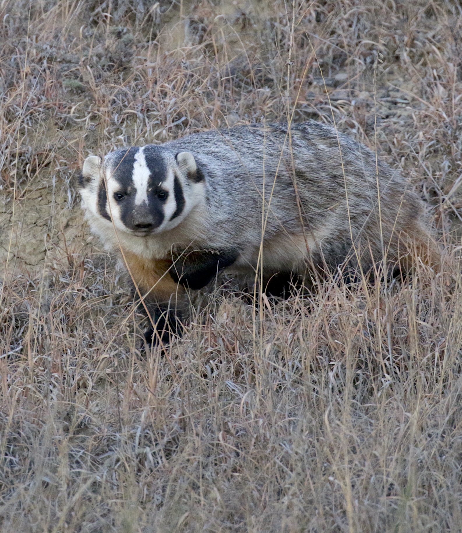 You don’t often notice the black legs of a badger because he’s built flat, wide, and low to the ground. When running in short grass, a badger reminds me of a slab of animated shag carpet bouncing along.